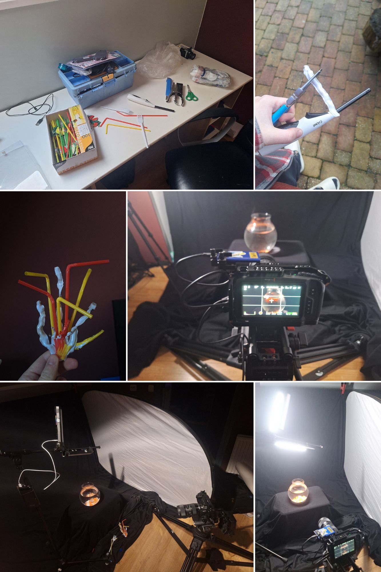 Ik had van Bart de tip gekregen om iets te doen met de text. Hij kwam met de ideeën iets te experimenteren met bijvoorbeeld letters van gelei. Ik vond het lastig hier iets mee te doen en heb een volledige les na gedacht over hoe ik dit aan kan pakken. Uiteindelijk besloot ik de text uit te printen in een lettertype die er goed uit zou zien in water en heb dit in een tank vol water laten drijven.